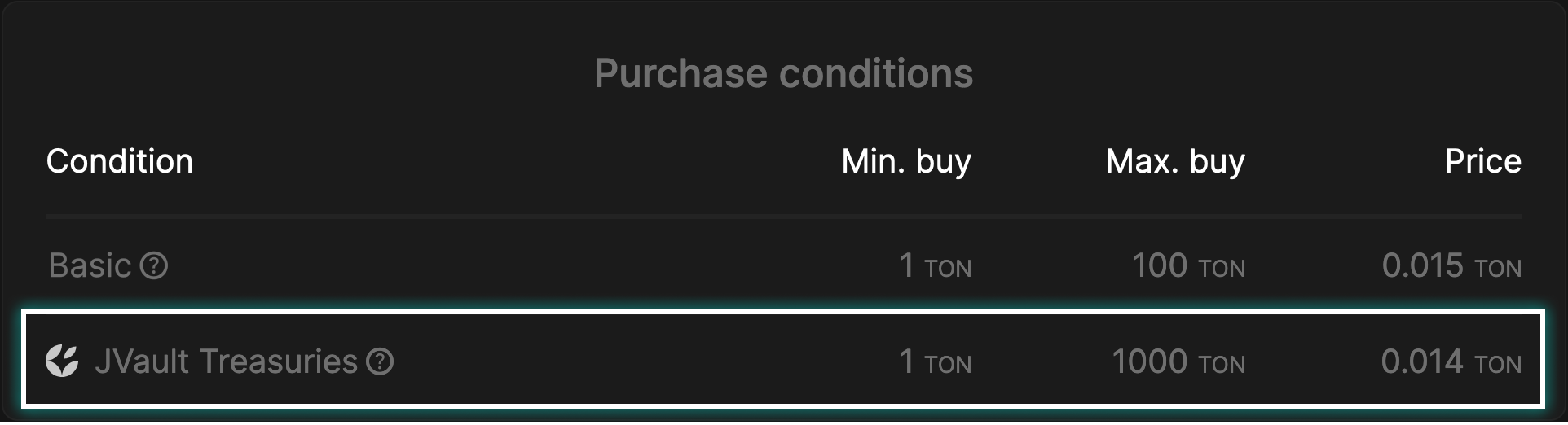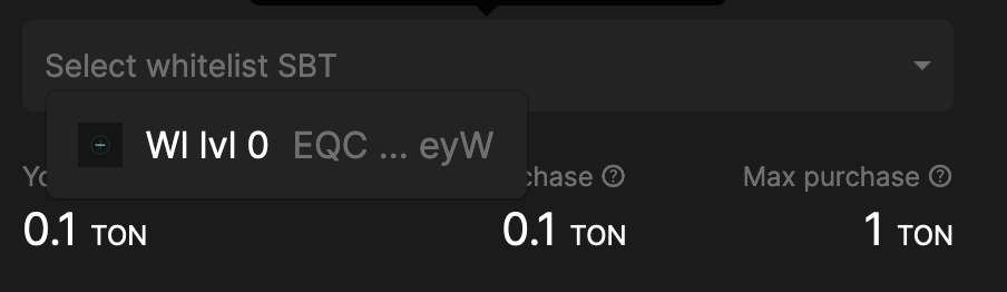 В случае, если у вас есть Whitelist SBT от одной из коллекций, представленных в "Purchase Conditions", вы можете использовать его для приобретения токенов на более выгодных условиях.