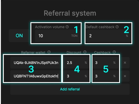 Для активации реферальной системы заполните раздел Referral system.